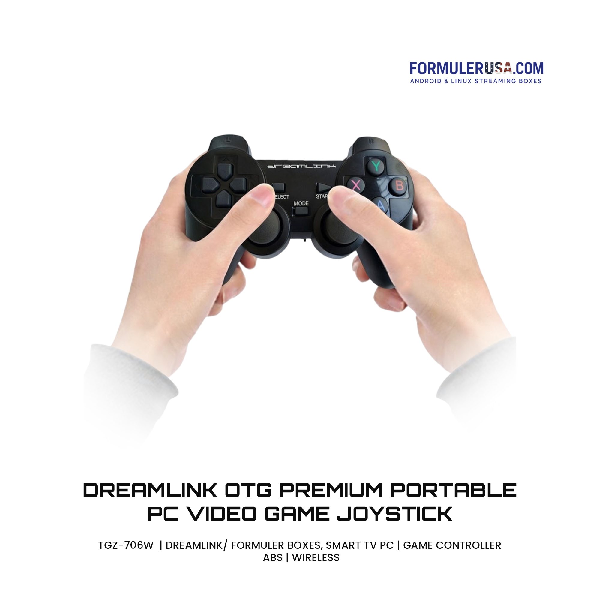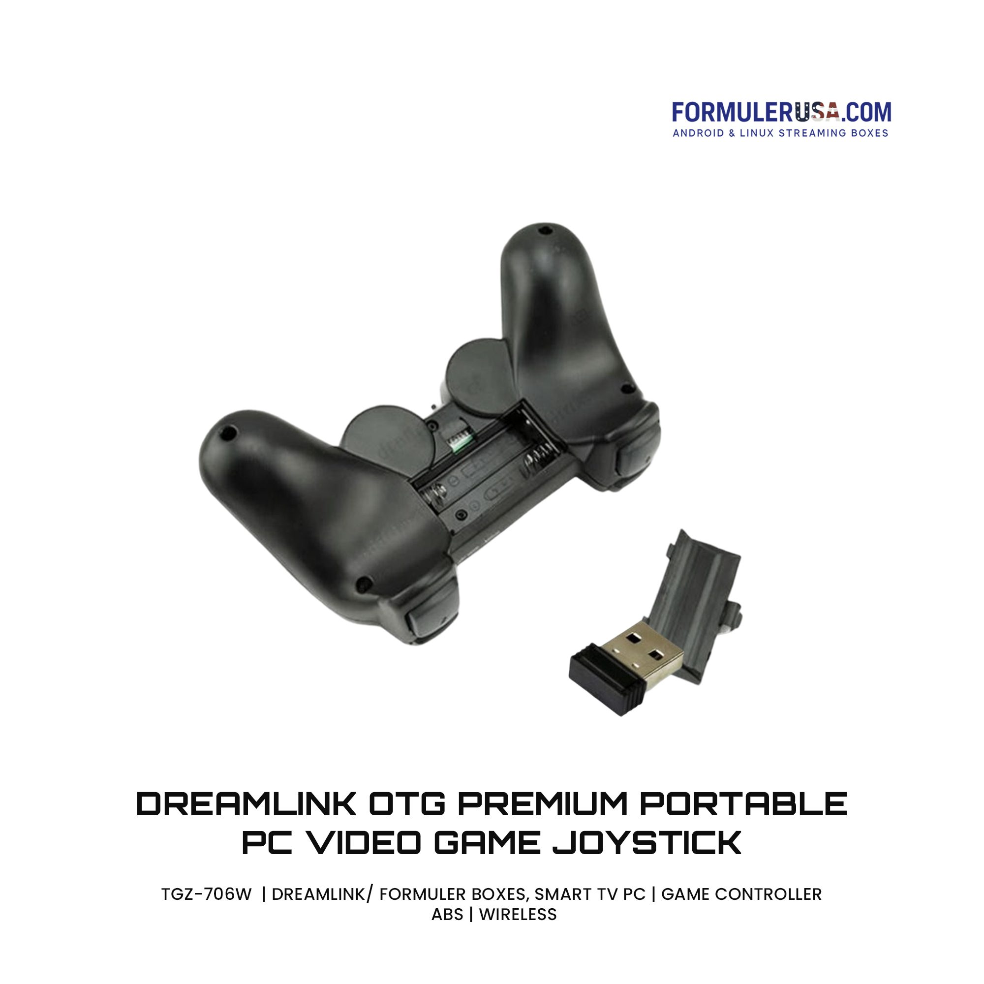 Dreamlink OTG Premium Portable PC Video Game Joystick compatible with Dreamlink/Formuler boxes, PC and Smart Tv. Details Model: TGZ-706W Compatibility : Dreamlink/ Formuler Boxes, Smart Tv PC Accessory Type: Game Controller Material : ABS Connection: Wireless Quantity (pcs): 1 What’s in the box: Controller